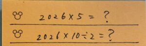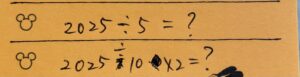 これは「÷5」ですが、さっきと逆で、2倍してから1の位の「0」を1個消すと、答えが簡単に出ます。